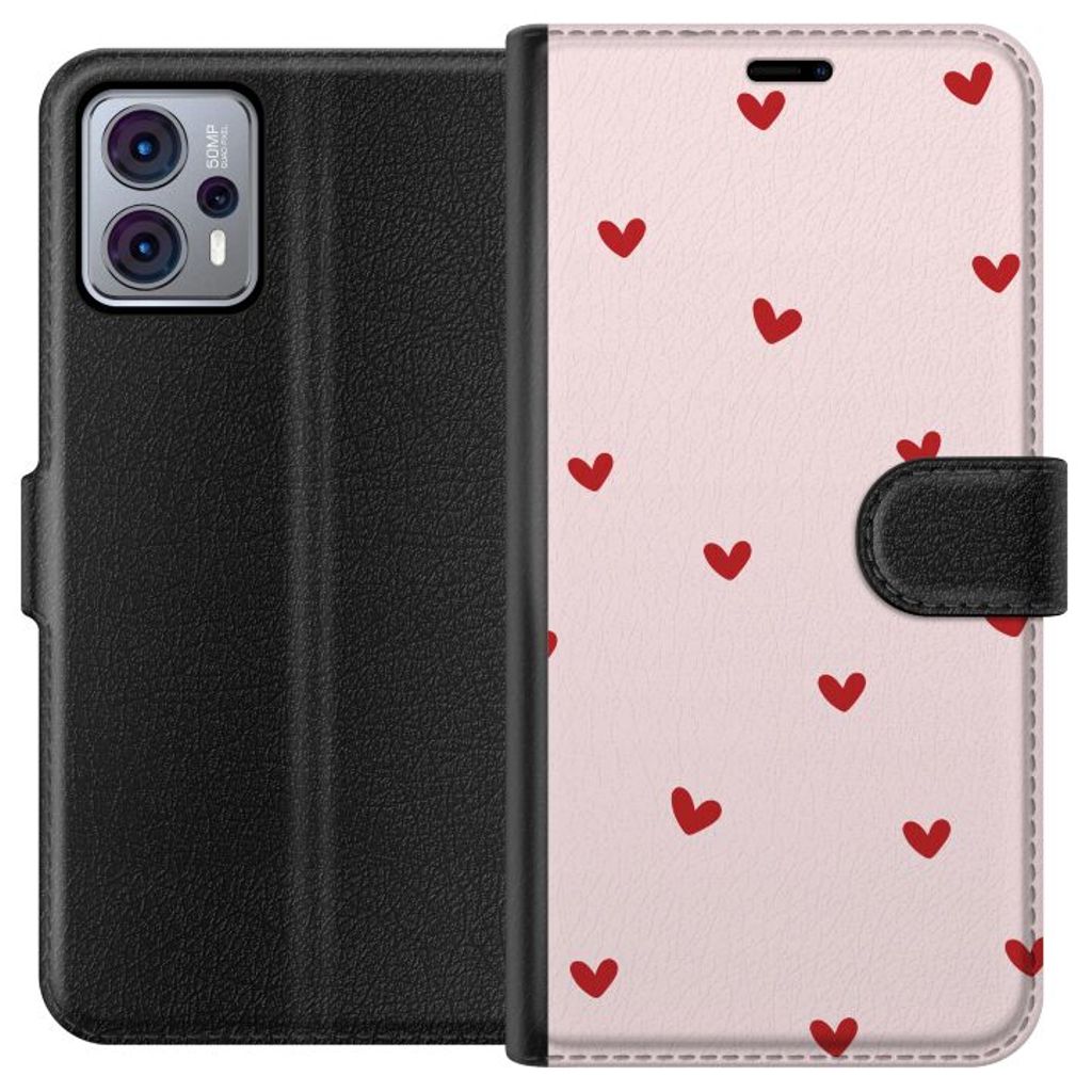Motorola Moto G23 Svart Plånboksfodral Små Hjärtan