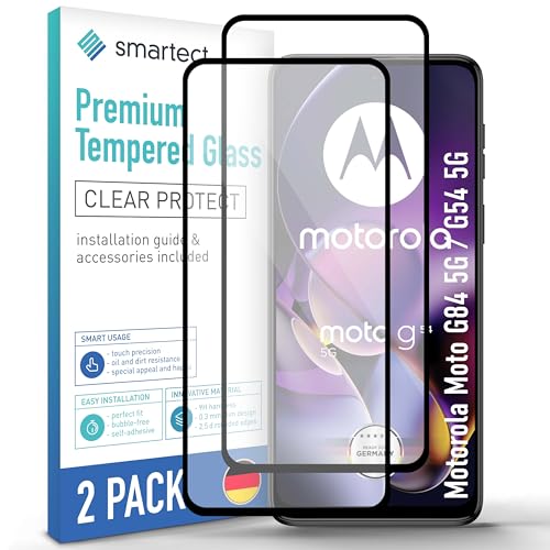 smartect [2 Stycken, Fullskärm] Skärmskydd kompatibel med Motorola Moto G84 5G / G54 5G, Clear Screen Protector i Härdat Glas 9H, Bubbelfri Installation, Anti-Fingeravtryck