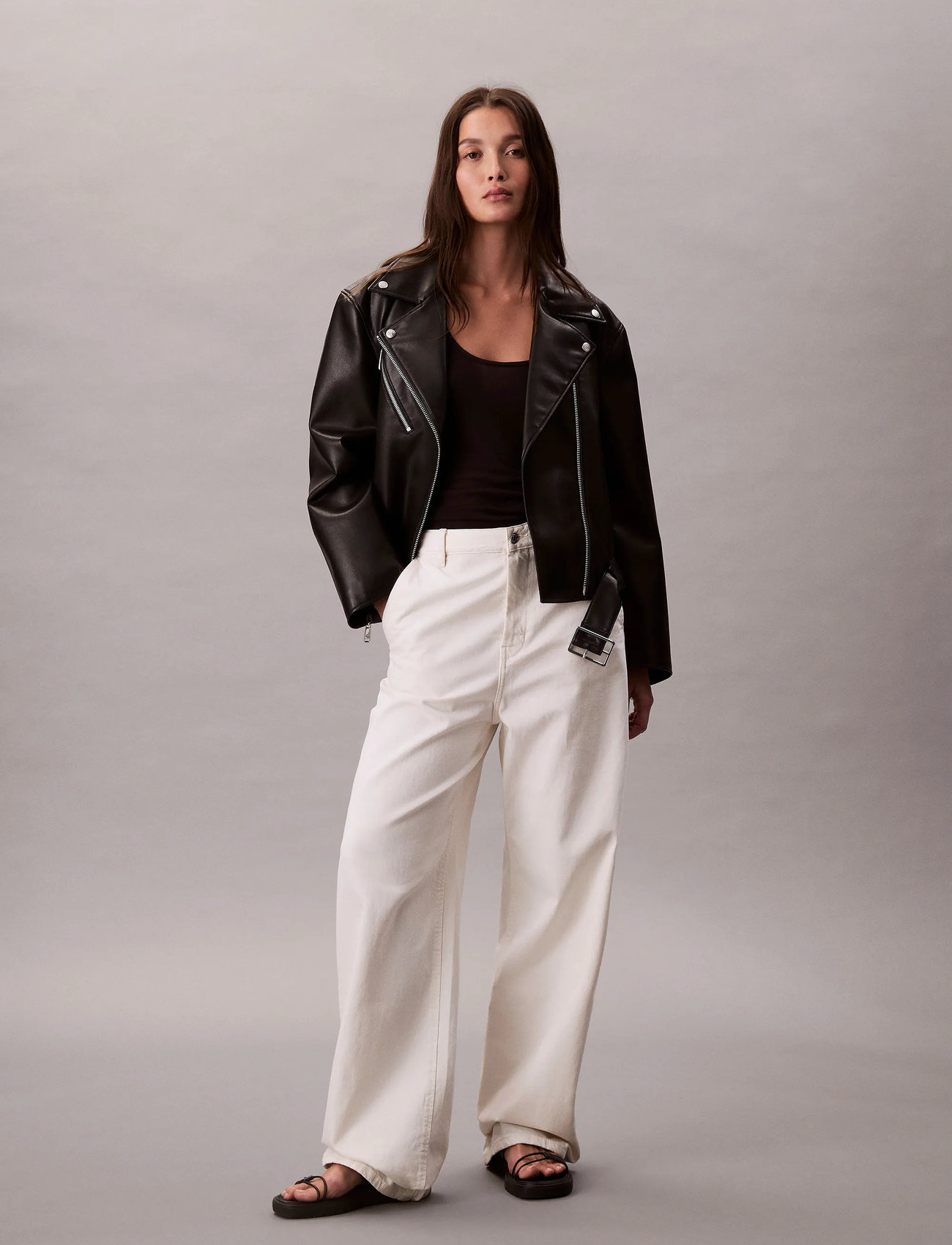 Calvin Klein Jeans | Faux Leather Moto Jacket W/Belt | S