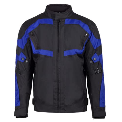 URBAN 5884 Cordura Moto Jacket för män, Vattentät och Hunt, Motorcykel Män 4 Stationer Jacket Med Avtagbar Termal Foder, CE, Svart/Blå, 3XL, Svart/Blå, 3XL