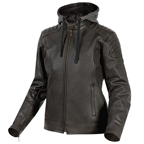 REBELHORN Impala Lady Läder Moto Jacket för Kvinnor Certifierade skydd på armbågar och axlar Avtagbar huva