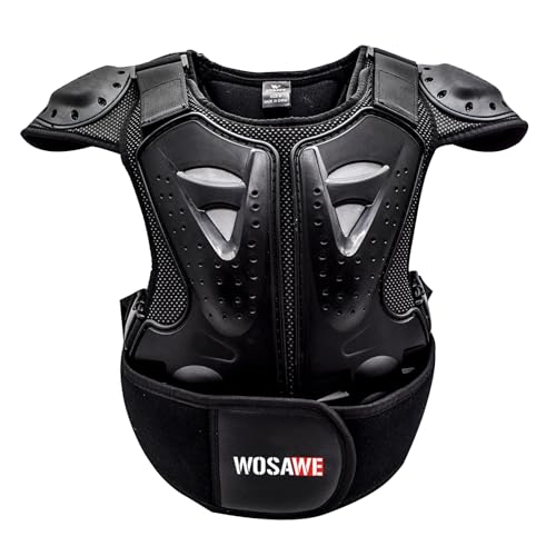 WOSAWE Kropps rustning för barn, motocross, bröstryggradsskydd, barn, kroppsskydd, väst för dirtbike, snowboard, skidåkning, skridskoåkning scooter (05 svart, L)