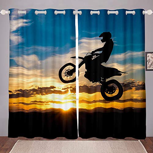 Loussiesd Motocross Rider gardin för flickor pojkar barn motocross motorcykel fönsterbehandlingar dekorativ extremsport tema fönster draperier chic solnedgång fönster gardiner B 66 x L72