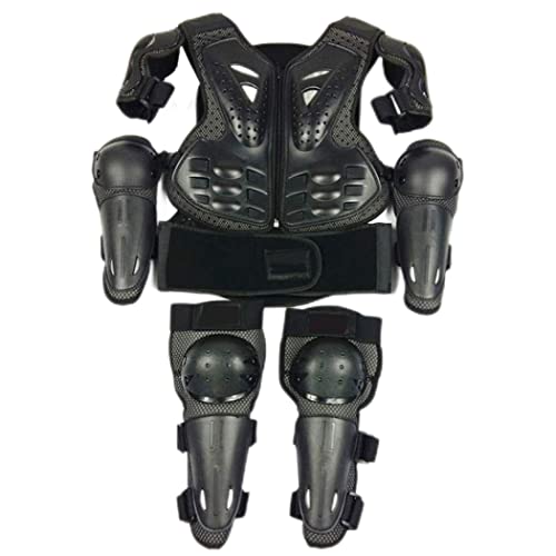Barn barn kropp rustning motocross bröst ryggrad skydd rustning, barn motocross skyddsutrustning kostym skydd rustning med knädynor, armbågsdynor, svart