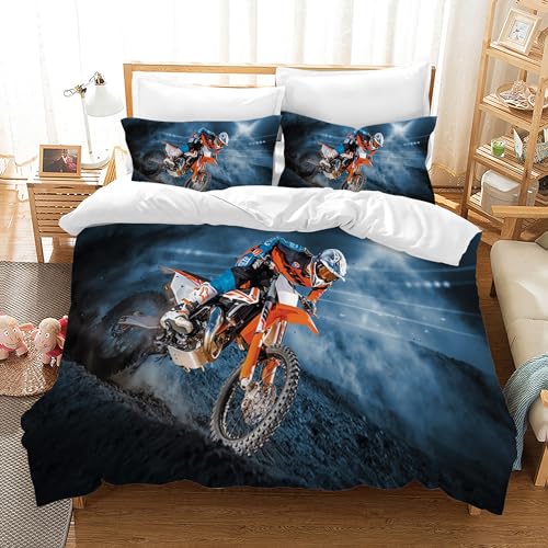 HZVRTN Motorcykel sängkläder set tonåringar cool motorcykel förare sängar set för barn pojkar motocross tema påslakan set, mikrofiber 3 delar med örngott (135 x 200 cm, motorcykel A)