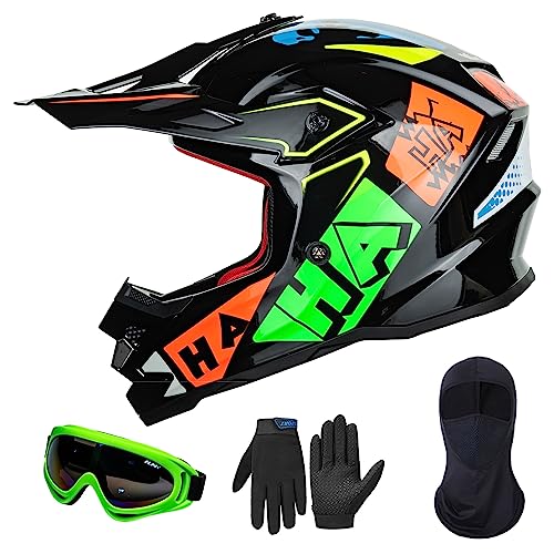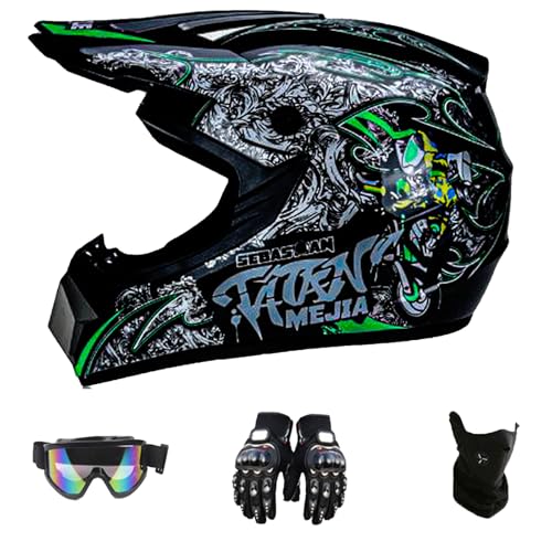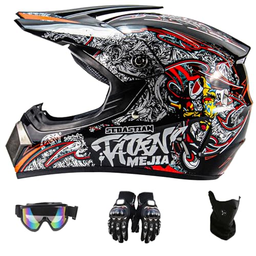 Bonbela Hjälm, professionell motocrosshjälm, barn, vuxna, motocross, Dirt Offroad, motorcykelhjälm med skyddsglasögon, handskar, ansiktsskydd (S)