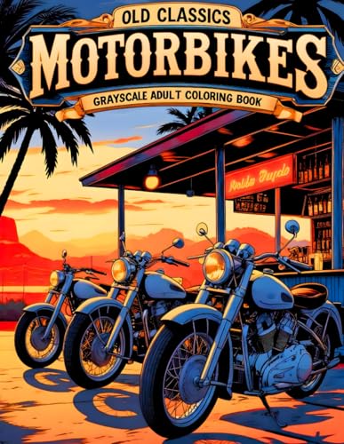 Old Classics Motorbikes Grayscale Adult Coloring Book: 38 Detailed Motorcycle Scenes with Vintage Bikes, Rider Moments and Retro Design – Perfect for ... Artists and Motor Heritage Enthusiasts