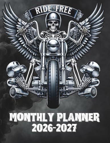 2026-2027 Monthly Planner with Biker Skull and Motorcycle Cover Design: Two-Year Organizer with Finance Tracker, Holidays, Inspirational Quotes, and Notes (January 2026 – December 2027)