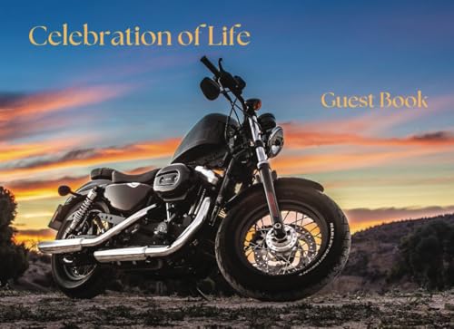Celebration of Life Guest Book: Motorcycle Memorial Keepsake with Photo Spaces and Memory Pages (Sunset Ride Design)