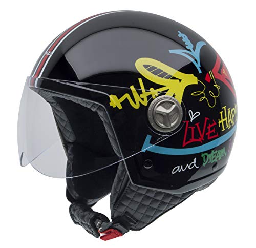NZI Zeta Dream Big öppet ansikte motorcykel hjälm, glans Happy, storlek M