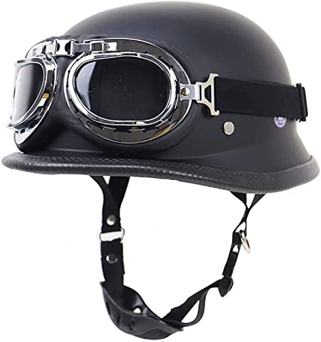 Vintage Tysk Stil Motorcykel Hjälm Med Glasögon - DOT ECE Godkänd Open Face Halvhjälm för Cruiser Chopper Scooter Moped, A-XXL (63~64cm)