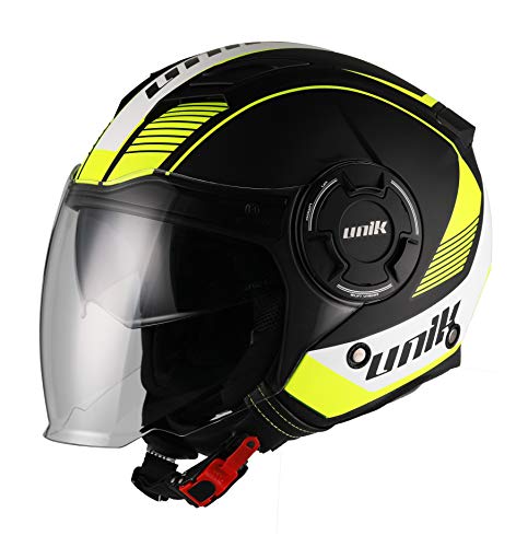 UNIK CJ-11 Motorcykel Hjälm Jethjälm med Visier WOLF svart/gul FLUO S