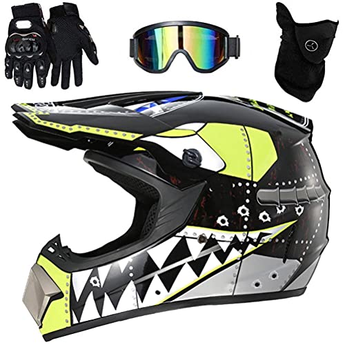 HUSHUI motocrosshjälm, heltäckande motorcykelhjälm off-road elektrisk dirtbike motorcykel/mountainbike hjälm med skyddsglasögon handskar ansiktsskydd för vuxna