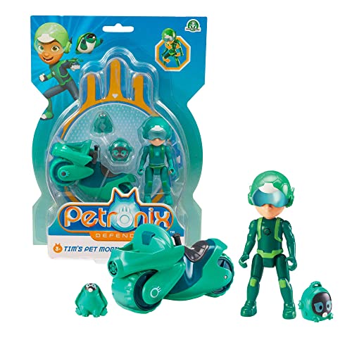 Giochi Preziosi Petronix Defender Tim och Shell - E, Uppdrag med motorcykel och avtagbar ryggsäck leksak, actionfigur 7 cm, superhjälte transformerbar för barn från 3 år