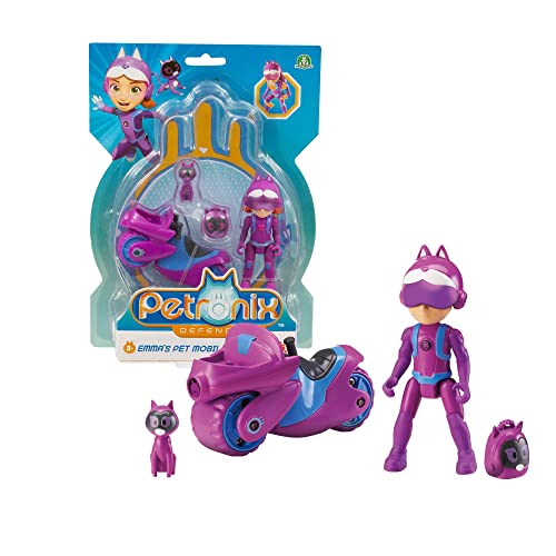 Giochi Preziosi Petronix Defender Emma & Kitt 10, Uppdrag med motorcykel och avtagbar ryggsäck leksak, actionfigur 7 cm, superhjälte transformerbar för barn från 3 år