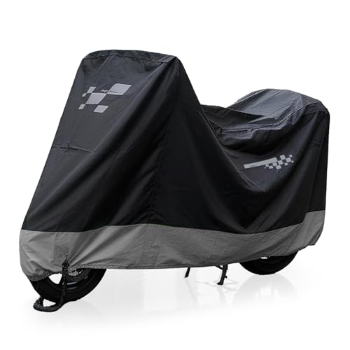 Maizjok Motorcykel Presenning Täcka Vattentät, Motorcykel Skydd Regnskydd Utomhus Inomhus, överdrag MC Kapell Vindtät Mot Sol Regn för Scooter Moped Motocross Cykel Street/Scambler (245x105x125cm)