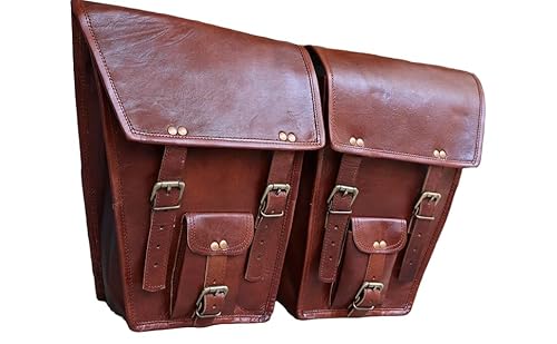 american blue herr 2 x motorcykel sidopåse brunt läder sidopåse sadelväskor sadel cykelväska (2 väskor) motorcykel cykel cykel