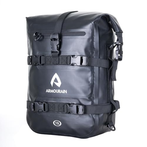 ARMOURAIN vattentäta motorcyklar baksäte bakväska 15 l sidoficka väska motorcyklar sidoram sidoväska motorcykel fallbygel väska motorcykel resväska med axelrem (PVC svart, 15 l)