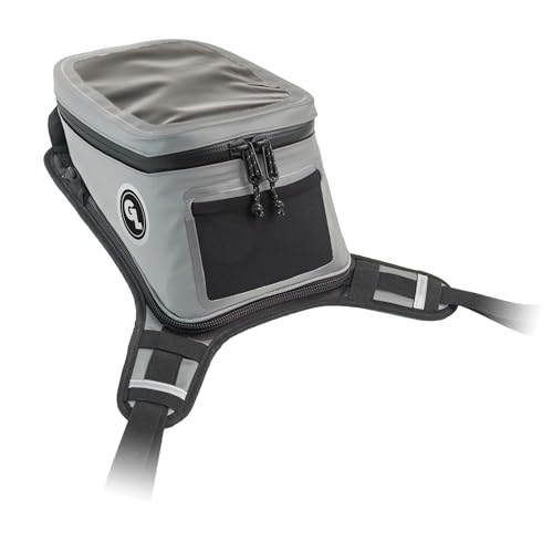 Gigantisk loop diablo tank väska, grå vattentät motorcykel tank väska, 6 liter kapacitet för små föremål, passar alla motorcyklar, snöcyklar, äventyr, dubbel sport och mer