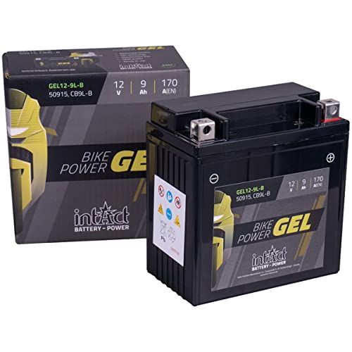 intAct - Bike-Power GEL12-9L-B, CB9L-B, 50915, motorcykelbatteri 12V 9 Ah 170 A (EN), underhållsfritt gelmotorcykelbatteri med 30% mer startkraft, för skotrar, motorcyklar