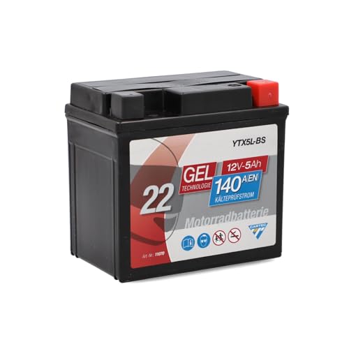 Cartec KEINEMARKE 11070 motorcykelbatteri YTX5L-BS 4Ah 80A GEL teknik batteri i OEM kvalitet cykelsäker förvaring underhållsfritt, svart