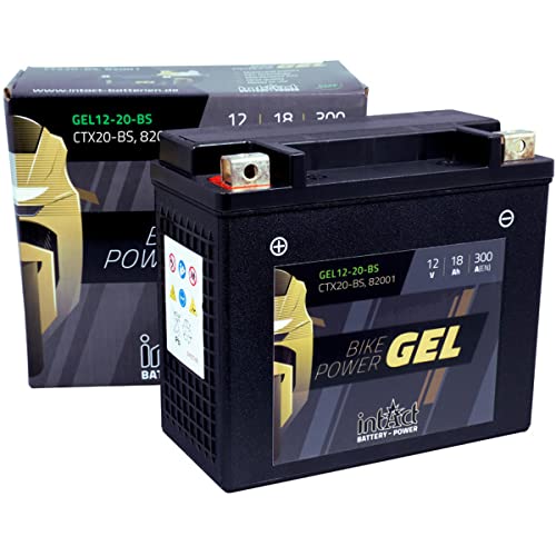 intAct - Bike-Power GEL12-20-BS, CTX20-BS, 82001, motorcykelbatteri 12V 18 Ah 300 A (EN), underhållsfritt gelmotorcykelbatteri med 30% mer startkraft, för skotrar, motorcyklar