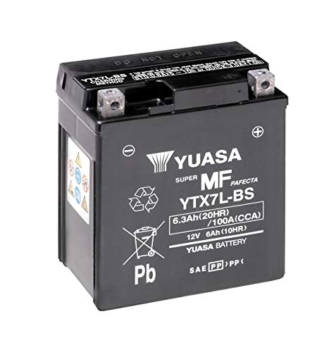 Yuasa YTX7L-BS motorcykelbatteri - underhållsfri - 12 V 6 Ah - storlek: 114 x 71 x 131 mm kompatibel med KYMCO Meteorit 125