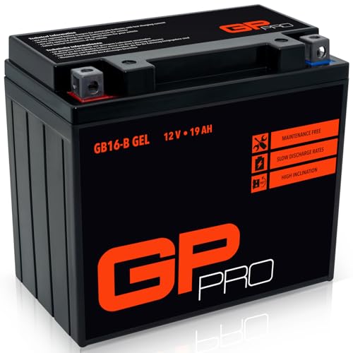 GP-PRO gelbatteri 12 V 19 Ah GB16-B motorcykelbatteri, underhållsfritt förseglad förladdad liknande YB16-B/CB16-B