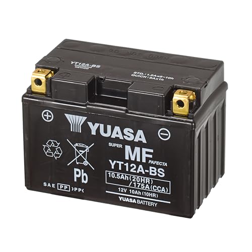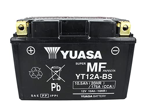 Yuasa YT12A-BS motorcykelbatteri - underhållsfritt - 12 V 10 Ah - mått: 150 x 87 x 106 mm, kompatibelt med CAGIVA Raptor (alla modeller) 1000 2016SUZUKI GSF Bandit 1250 2007–2008