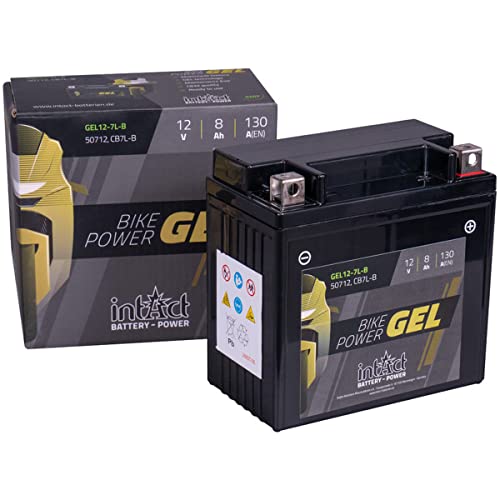 intAct - Bike-Power GEL12-7L-B CB7L-B, 50712, motorcykelbatteri 12V 8 Ah 130 A (EN), underhållsfritt gelmotorcykelbatteri med 30% mer startkraft