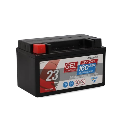 CARTEC motorcykelbatteri YTX7A-BS, 7Ah, 160A, gelteknik motorcykel startbatteri, OEM-kvalitet, cykelsäker, lagrbar, underhållsfri, svart