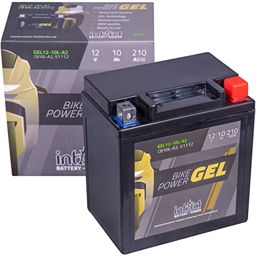 intAct - Bike-Power GEL12-10L-A2, CB10L-A2, 51112, motorcykelbatteri 12V 10 Ah 210 A (EN), underhållsfritt gelmotorcykelbatteri med 30% mer startkraft, för skotrar
