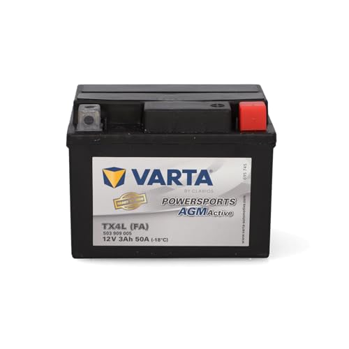 Varta Motorcykelbatteri 3 Ah / 50 A Powersports Active AGM, Lång Livslängd, Förladdat, Underhållsfritt, Lämpligt För Motorcyklar, Skotrar, Fyrhjulingar, Vattenskotrar och Snöskotrar, Svart