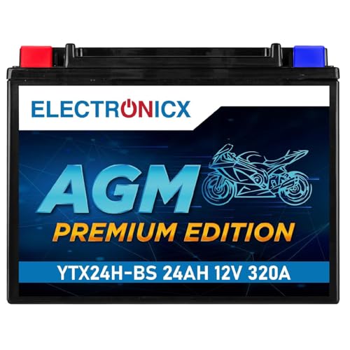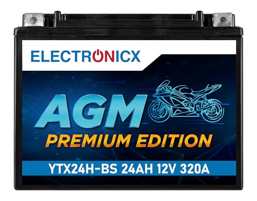 Electronicx AGM motorcykelbatteri YTX24H-BS – underhållsfritt, förseglat &vibrationssäkert – hållbar AGM-teknologi för MC, fyrhjuling, skoter, grästraktor, vattenskoter & snöskoter