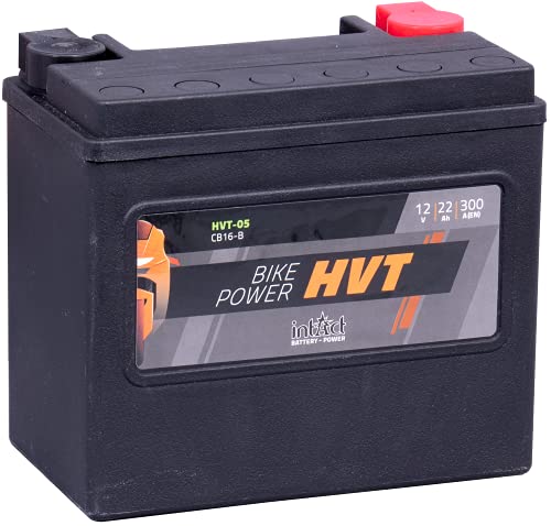 intAct - Bike-Power HVT-05,CB16-B AGM motorcykelbatteri 12V 22Ah 300A (EN), AGM-batteri för skotrar, motorcyklar, fyrhjulingar, grästraktorer och mycket mer