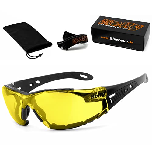 HELLY® – No.1 Bikereyes® | Bikerglasögon, motorcykelglasögon, motorcykelsolglasögon | testsiehållare: dimfria, vindtäta, okrossbara | TOP-bärkomfort | Glasögon: moab (xenolit (gul))