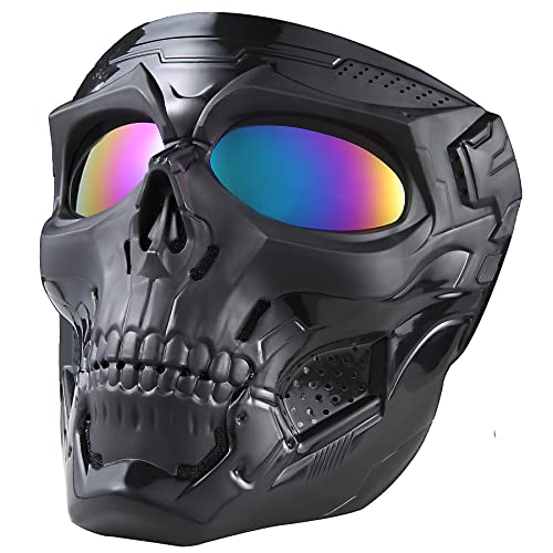 Airsoft dödskallemask heltäckande taktiska masker med PC-lins ögonskydd för paintball halloween skrämmande masker, motorcykelglasögon racing strid taktiska militära glasögon