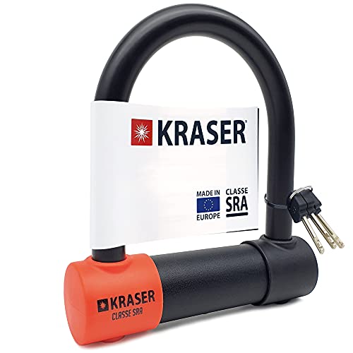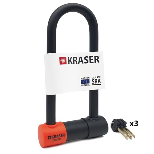 KRASER KR85M robust motorcykellås U-lås, SRA-godkänt, hög säkerhetstestad, båge 85 x 250 mm ø18 mm dubbel stängning, antikroklås, stöldskydd U lås för motorcykel, skoter, elcykel
