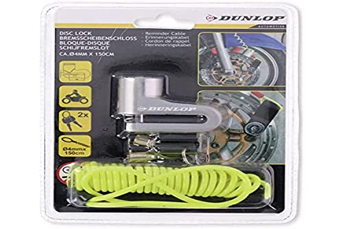 Dunlop Motorcykel bromsskivlås, skivlås 4 mm Ø med 1,5 m minneskabel, motorcykellås för motorcykel och cykel, svart (svart)