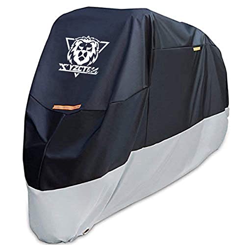 XYZCTEM Svart motorcykelskydd – vattentätt utomhusförvaringsväska, passar upp till 108 tums motorer, tillverkad av slitstarkt material, kompatibel med Harley Davison och alla motorer, professionell