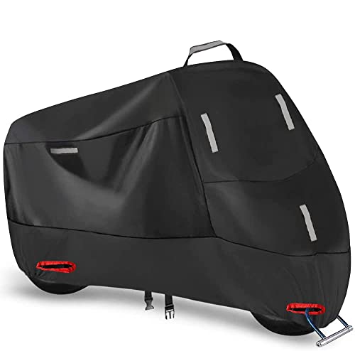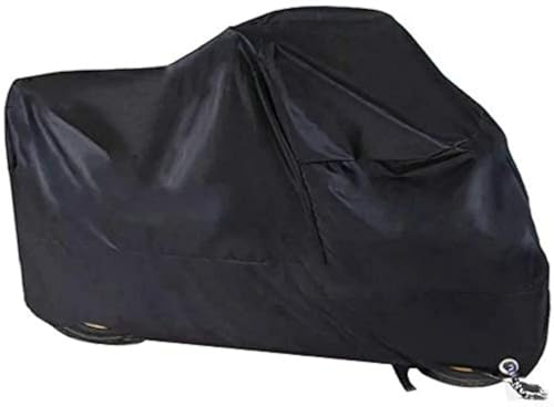 XYZCTEM Motorcykelskydd – vattentät utomhusförvaringsväska, tillverkad av slitstarkt material, passar upp till 116 tum Harley Davison och alla motorer (svart och låshål och professionell vindtät rem)