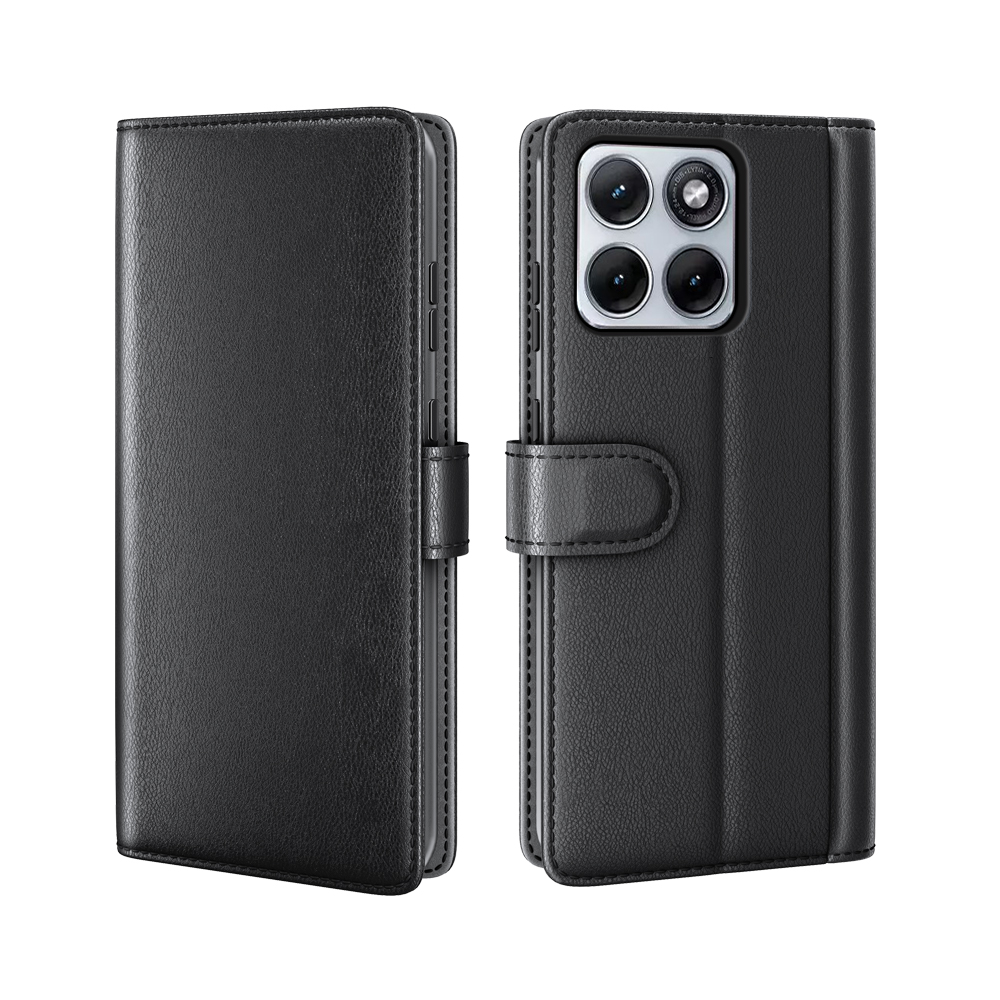 Motorola Edge 70 Plånboksfodral i Äkta Läder, Svart