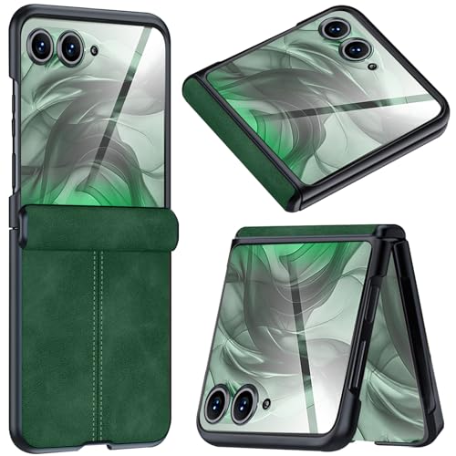 NINKI Kompatibel med Motorola Razr 60 Ultra fodral, läder baksida hård PC-skal anti-fall skyddande stötfångare telefonfodral med gångjärn, skyddande smal passform fodral för Moto Razr 60 Ultra, grön