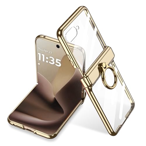 COQUE fodral Razr 60 ultragalvaniserad fantomskyddsfodral, ultratunt skal film allomfattande telefonfodral med ring, vikbart telefonfodral för Motorola Razr 60 ultra-guld