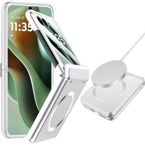 NINKI för Motorola Razr 60 Ultra 2025 fodral med inbyggt härdat glas skärmskydd och gångjärnsskydd, stöttåligt PC hårt skal, magnetiskt kompatibelt, elegant lyxigt skydd för Razr 60 Ultra, Silver