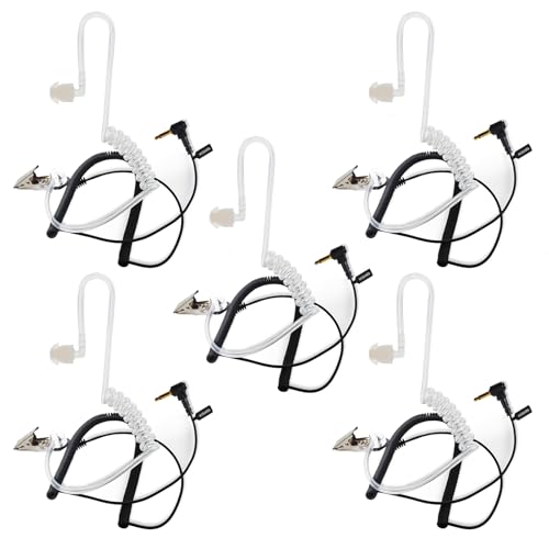 HYSHIKRA On Ear Headset 3,5 mm Jack Single Ear Reception Only Walkie Talkie hörlurar Kompatibel med Motorola Sepura Rexon Wouxun Kenwood Baofeng Quansheng-radioapparater (5, Transparent Tube)