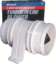 Motorrumsfläkt Attwood Turbo 3000 Series, 12 V, inline, Ø75 mm (3") - Ø75 mm (3"), 4.1 m³/minut