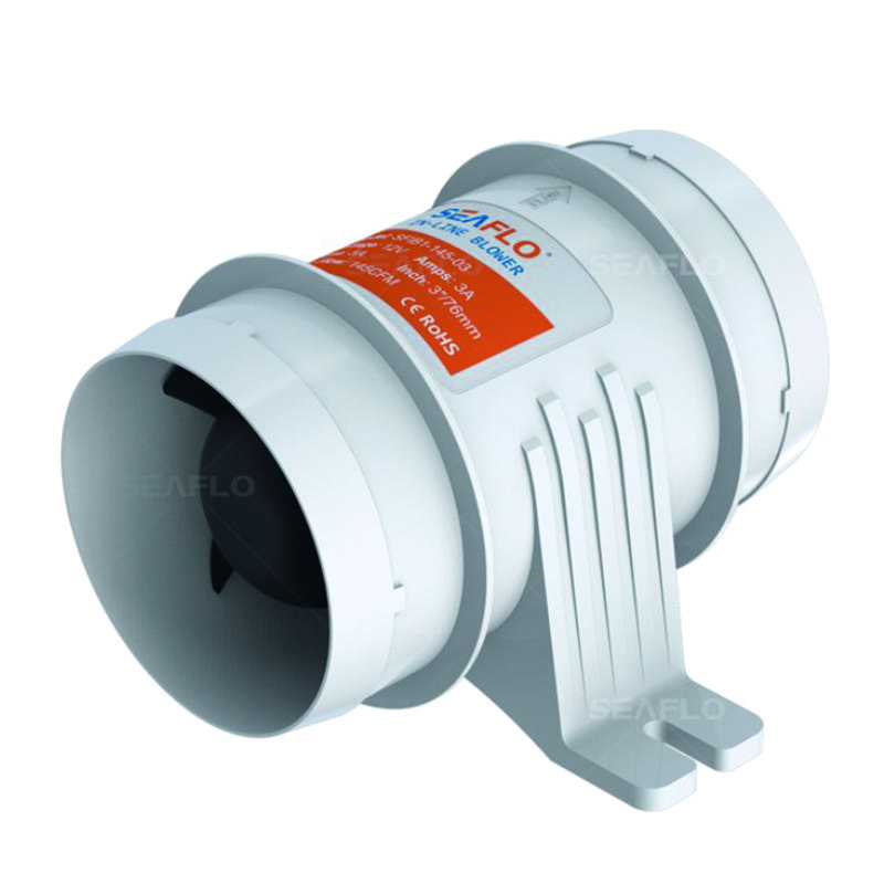Motorrumsfläkt SEAFLO In-Line Blower, 24 V, inline, Ø75 mm (3") - Ø75 mm (3"), 4.1 m³/minut