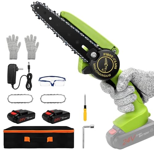 LUPATDY Minimotorsåg med batteri, 24 V, 15 cm (6 tum), elektrisk motorsåg och laddare, batteridriven motorsåg, liten elektrisk handmotorsåg, uppladdningsbar för trädgård, trädbeskärning