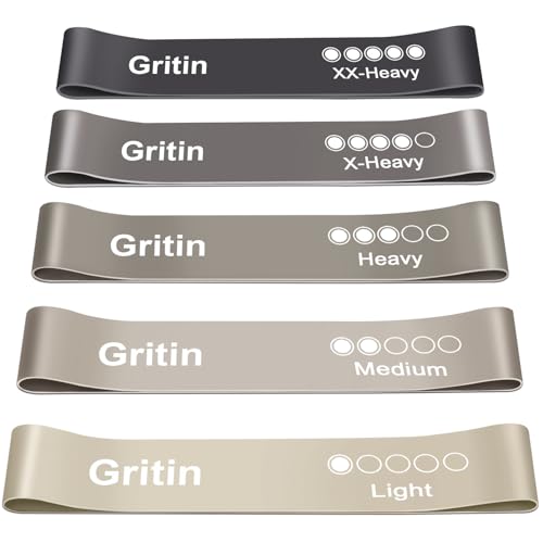 Gritin Motståndsband, [Set med 5] Träningsband-5 Olika Motståndsnivåe, med Träningsguide & Förvaringsväska, Elastiska Fitnessband med Latex för Muskeluppbyggnad, Yoga, Gymnastik